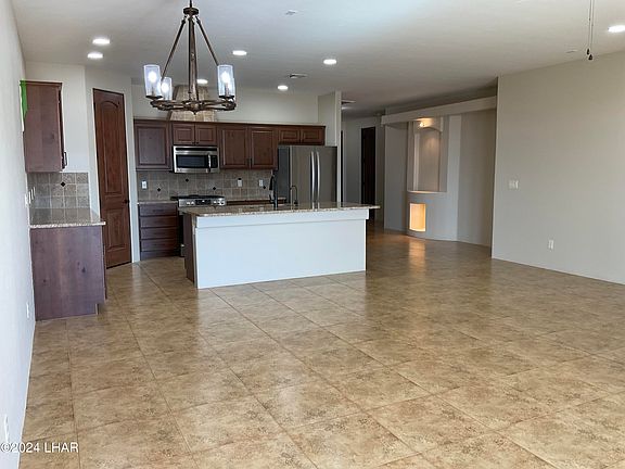 Beautiful open concept home located on the lake side of the highway with underground utilities in the North Pointe Gated Community with mini-split air conditioner in the RV garage. The home has been repainted, new tile flooring throughout and new appliances in 2021. This home has always been a vacation home and rarely used. It also features granite countertops, 9' ceilings, natural gas, water softener, RO, and RV hookups in the a/c garage. The backyard is south facing with a covered patio to relax and enjoy the pleasant Havasu weather. It also has a raised platform to add a hottub to enjoy the sunset over the mountains. It is build on a post-tension slab.