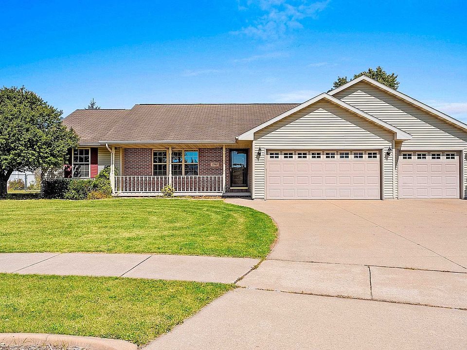 Convenient W De Pere area! Not far from SW Park. Spacious- split BR ranch w/recently finished LL. GR w/cathedral ceiling & gas log FP, LVP flooring. Large din w/bump out- patio dr to fenced yard & patio. Kit w/abundance of maple cab & snack counter space. LVP flooring. Primary suite w/walk-in closet, bath w/shower. 2 BR's w/updated carpet, full bath. 1st flr laundry. Professional fin lower- aprx 1,227 sq ft, LVP, rec rm-DW-sink-cabinets, FR, office w/french doors, exercise rm* w/full bath, cer mosaic stone tile & fl. *Stubbed for egress window. Basement storage closets. 3+ st garage. 2 openers. Backyard has pear tree & start of raspberry patch. Water heater gas 5-18. Directions are for road const to finish aprx. mid Oct on round about on Lawrence Dr. Preferred close & occ date 10/17/25.