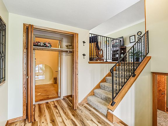 Move-in ready 4BR home on 1/2 acre, in a quiet culdesac of the Willow River! Easy country living near shopping and highways. Large sun-filled foyer has closet with walk-in storage room. Living room has built-in lighted cabinet and bayed picture window overlooking level lot at the river. Kitchen with SS Whirlpool appliances, refrigerator with french doors and lower freezer, newer dishwasher. Dining room has patio door to large deck. Enjoy morning coffee or entertaining a crowd outside, restained deck has steps to backyard. Full bath and two BRs up with ceiling fans, main BR with two closets, one walk-in. Lower level has glass door to close off to upper level. Spacious family room with daylight windows and gas stove. Two bedrooms down, one with sitting area and other with walk-up steps to exterior door. Great for moving furniture! Laundry and utility room has built-in shelving and room for shop or crafts. Maintenance-free living with vinyl siding . Mature level lot and driveway, near the end of a quiet culdesac is ideal for any household.