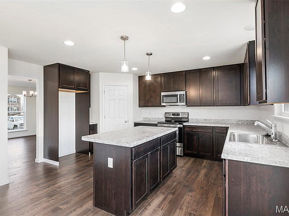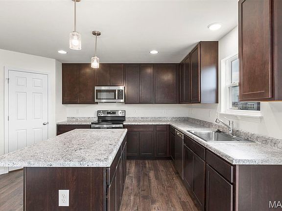 New McBride Homes Royal II 2-story, 4BR 2.5BA available this winter! Inside you’ll find a luxury kitchen with Winstead Burlap 42” tall cabinetry, lg center island w/breakfast bar, quartz countertops, stainless steel GE appliances, & corner walkin pantry. The breakfast rm opens to the backyard w/sliding glass door. The main level has a spacious family room with a ceiling fan. Plus, a formal dining, laundry, & powder rm. Open spindled staircase to the 2nd floor. Upstairs the primary suite has a walkin closet, private lux bath w/double bowl vanity, tub, enclosed toilet, & walkin shower. Plus 3 extra bedrooms & hall bath. Upgraded lighting/plumbing fixtures, & ¾ bath rough-in at LL. Polo Grounds offers a barn-style clubhouse, playground, pickleball court, fire pit, scenic lake w/fountain & more. Located in Eureka near Highway 109/Hwy FF, in the Rockwood School District. Enjoy peace of mind w/McBride Homes’ 10 year builders’ warranty & incredible customer service! Similar photos shown.