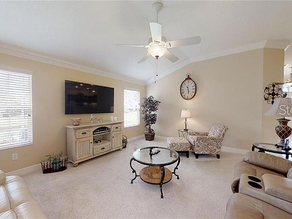 Expanded, meticulously maintained Camellia adorned with lush, manicured landscaping, custom painted drive/walkway and decorative curbing situated on an Oversized Corner Lot in the highly sought after Village of Mallory Square. Upon entering the Open Floor plan your eyes are immediately drawn to the impressive 10 inch Crown Molding and French Doors that beckons you into a glass enclosed Florida Room with stunning wood grain tiles Plus a Bird Cage with a four-seated Jacuzzi, tub nestled in rear privacy of landscaping to enhance your (relaxation) and (serenity). The spacious Kitchen boasts rich cherry cabinets, gorgeous Quartz Counters, beautiful tile and glass Backsplash, Gas Range, Pull Outs, a Breakfast Bar fit for entertaining and under cabinet lighting! Highlights in the Master Suite include Vaulted Ceilings, Two Walk-In-Closets, Roman Shower, Dual Sinks and Yes, an added Bonus Room! The guest area in this spit bedroom model is enhanced with an expanded bathroom and window along with pocket doors for your company's comfort. The second Bedroom has Tray Ceiling and the enlarged third Bedroom (no closet) features vaulted ceilings. The inside Laundry Room is equipped with a Whirlpool Washer/Dryer on Pedestals for extra height. The painted two car garage has attic stairs and extra shelving for storage. There's even an A.D.T. Security Alarm System! Upgrades Galore. A Must See!!