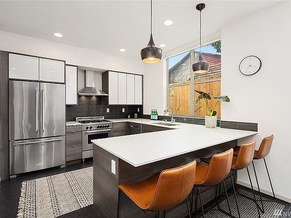 Better-than-new standalone home in the heart of Ballard. Unique floorpan allows for easy living; the ground floor features a gourmet kitchen which seamlessly flows into the light-filled living room, all set on a textured & polished concrete floor. Upstairs you'll find a master suite, huge walk-in closet & spa shower. Work from home in one of the two top-level large bedrooms, or private rooftop deck. Moments to parks, restaurants, grocery stores, farmer's market, and transit. This is a must-see.