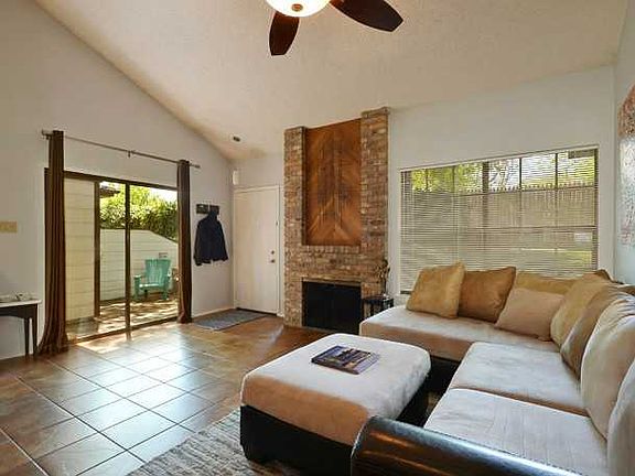 Great two story condo tucked away in the small community offering tons of privacy! 2 masters - 1 up and 1 down! Open floor plan with tall ceilings, tiled floors and abundant natural light! Spacious kitchen with silestone counters, beautiful glass tile back splash and plentiful cabinet storage. Loft space upstairs for a game room, media room, or office. Private and fenced back patio. Community pool and convenient location to shopping, dining and more.