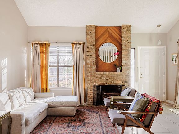 Discover comfort, style, and convenience in this beautifully updated 2-bedroom, 2-bathroom condo, ideally located just off Hwy 183. Set within a gated community offering a sparkling pool and lush green spaces, this home blends privacy with prime access to Austin’s best amenities. Inside, you'll find a spacious living room with vaulted ceilings, built-in shelving, and a charming brick wood-burning fireplace—perfect for cozy evenings or casual entertaining. The fully updated kitchen features sleek stainless steel appliances, chic cabinetry, and stone countertops, all open to the main living space. Upstairs, a versatile loft offers the perfect space for a home office, second living area, or creative retreat. Both bedrooms include en-suite baths, making this layout ideal for comfortable everyday living or guests. Enjoy the private outdoor patio, tucked into mature landscaping for a peaceful escape. Additional highlights include an abundance of natural light, a flexible open floor plan, and stylish, move-in-ready finishes throughout. Located just minutes from The Domain, downtown Austin, and major tech hubs, this condo offers the ideal mix of location, function, and elevated design.