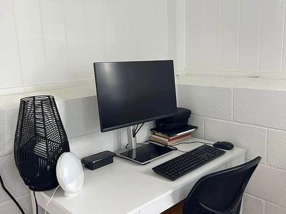 A dedicated workspace corner: perfect for remote work, tele-health, or late shifts.