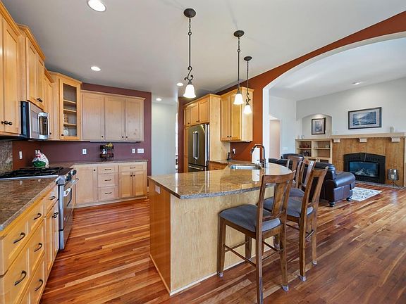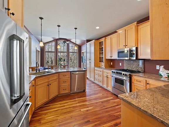 One-of-a-kind spacious Rambler with high-end Arts and Crafts finishes, all located on a private 2.5 acre heavily wooded lot. Solid cherry wood floors, Maple cabinets with granite countertops, Picturesque sun-room off the kitchen, Butlers Pantry and 11 foot smooth ceilings. Separate/Formal Dining Room, Eat-in Kitchen, En Suite Bathroom w/Jetted Tub, rain shower and handheld shower head, Separate Shower, Ceiling Fan(s), Main Level Primary, Stainless Steel Appliance(s), Vaulted Ceiling(s), Natural Woodwork, Walk-In Closet(s) 3/4 Bath has large walk-in shower. Lower level provides a great experience with family room/theater room, wet bar area great for entertaining, an Artwork display area with Arches plus in-floor heat. Outside is a horticulturist's dream with a myriad of flowers and plants & walking paths highlighted with landscape boulders obtained from Taylor's Falls area. See Supplements.