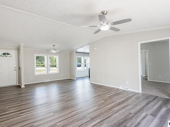Welcome to this completely remodeled, move-in-ready double-wide home on a permanent foundation at 17481 Sonora Hardin Springs Rd in Eastview, Kentucky. This property offers the perfect blend of serene country living with convenient access to nearby amenities, located just 15 minutes from Elizabethtown and the new Ford Blue Oval SK plant in Glendale. The home sits on 2.254 fully fenced acres, providing plenty of space and privacy. It features a fantastic addition that includes a massive three-car garage and an expansive living area. Inside, you'll find a spacious layout with four bedrooms and three bathrooms. The large eat-in kitchen is a true highlight, boasting a central island with stunning granite countertops. This home offers a peaceful retreat with all the modern comforts you desire.