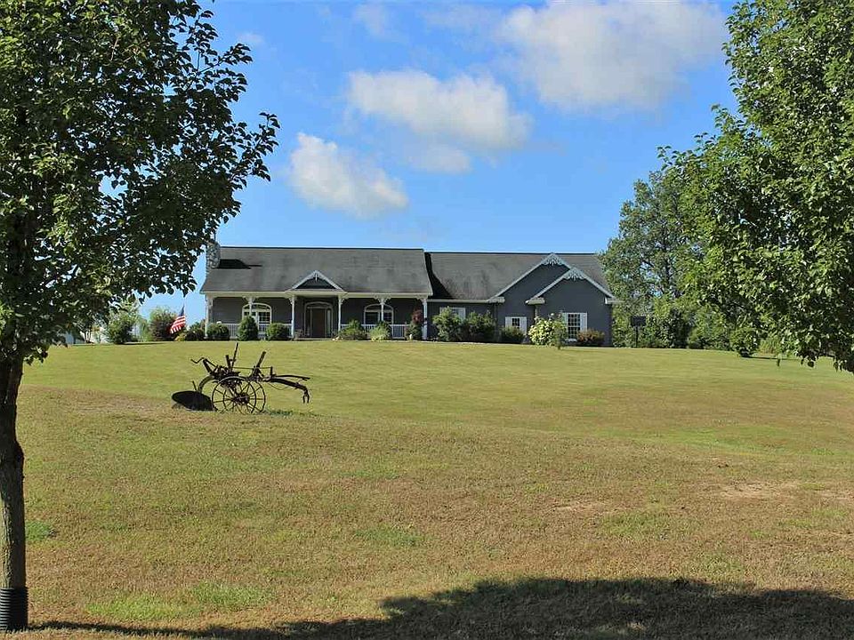Outstanding 4B/R Ranch Home on 19.25 Acres. Built in 2005 and featuring 4B/R, 3.5 baths; open floor plan, vaulted ceilings, stone fireplace; kitchen w/stainless appliances; large master suite w/ gorgeous bath and huge walk-in closet, that walks out to covered back porch; covered front porch; finished walk-out lower level; heated floors in lower level & 3-car attached garage; 32x68 pole barn w/ loft.
