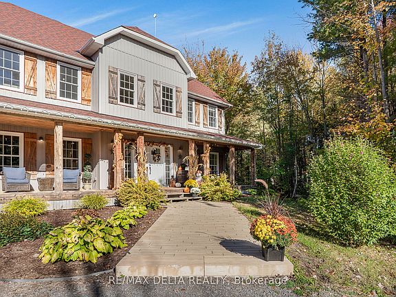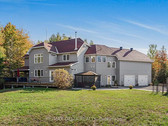 Tucked away on nearly 6 acres of wooded privacy, 1749 Albert Leroux Road is a stunning custom-built estate offering over 6,400 sq.ft. of beautifully finished living space. A long, tree-lined driveway leads to this impressive two-storey home, where timeless charm meets upscale finishes. Built in 2017, it features a welcoming front porch with timber accents and warm wood details carried throughout the interior. The gourmet kitchen is a showpiece with custom cabinetry, a butcher-block island, Bosch appliances, and exposed beams that set the tone for the homes inviting style. Oversized windows in the dining and living areas frame forest views and fill the home with natural light. The primary suite serves as a private haven with a spa-inspired ensuite featuring a freestanding tub, double vanity, and a one-of-a-kind wood-accented shower. The fully finished lower level adds even more living space with a family room, games area, office, bathroom, and the comfort of radiant in-floor heating. Outdoors, enjoy a resort-like setting with an inground pool, gazebo, and firepit surrounded by mature trees. A heated attached double garage provides year-round convenience and additional comfort. Just minutes from Casselman and Hwy 417, this property is a rare opportunity to enjoy modern sophistication in a serene setting, an exceptional expression of rustic luxury.