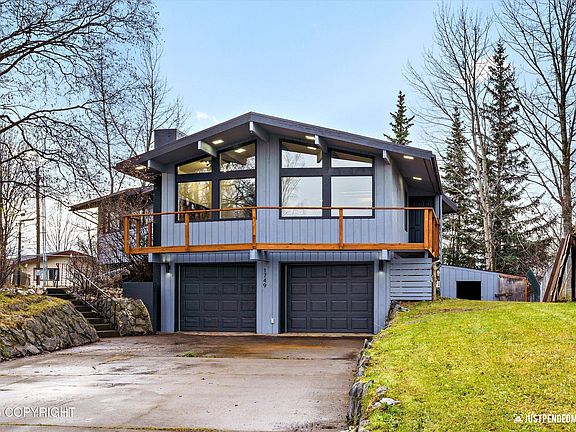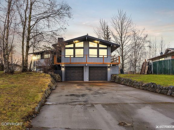 This home has it all! Stunning mountain views, with 4 bedrooms, 2 spacious suites, and bright open living areas filled with natural light. Enjoy modern updates with warm wood accents, a huge fenced lot, and an oversized two-car garage with extra storage. Large gate access offers room for your RV or Alaska toys! Brand new deck to enjoy views! This is an Alaskan dream home ready for a new owner!