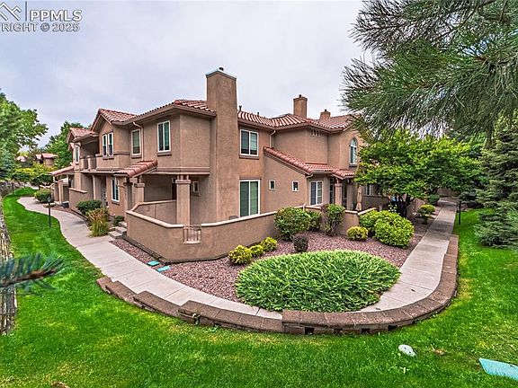 Nestled in the serene setting of Colorado Springs, CO 80906, this stunning Mediterranean-style townhome offers 2 bedrooms and 3 bathrooms, an exceptional blend of comfort, style, and prime location. Perfectly positioned just minutes from the iconic Broadmoor Hotel, Golf Course, and World Arena, and with easy access to I-25, Hwy 115, and Fort Carson, this beautifully maintained property is an ideal choice for both homeowners and investors. The home boasts a low-maintenance stucco exterior and Spanish tile roof, sitting adjacent to a peaceful courtyard with mature trees. Inside, you are greeted by a bright, open-concept main level featuring wood plank flooring, a cozy gas fireplace with custom built-ins, and a kitchen with gorgeous tile countertops, ample storage, and all-white appliances. A convenient guest half-bath and a charming private patio for relaxing complete this floor. Upstairs, the home reveals its incredibly functional dual-suite layout, featuring two spacious bedrooms—each with its own private en-suite bathroom and a generous walk-in closet. A rare and valuable bonus is the large lofted area, offering versatile space for an office, play area, or second living room. This immaculate unit is further enhanced by an upstairs laundry, a new hot water heater and a spacious two-car attached garage. Welcome to a peaceful retreat that is close to everything, offering a perfect combination of scenic living and unparalleled convenience.