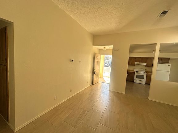 This 2 bedroom, 1 1/2 bathroom house with one car garage, is located in the North Hills subdivision in Rio Rancho. Refrigerator, stove, dishwasher, washer and dryer hook ups. Master bedroom has a walk in closet. Back yard is fenced in. Tenant is responsible for all utilities except HOA dues.
