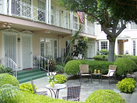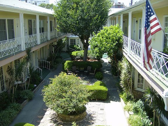 Single/Efficiency/Bachelor-style Apartment 1 Bath & efficiency kitchen; Utilities (heat, electric) included in rent. ONE PERSON OCCUPANCY ONLY, please. On-site, reserved parking space (1 car) included in rent. $1,195.00 monthly -- same $ deposit OAC, with stable rental history and verifiable employment. 1-Year Lease Required -- Rent Control bldg. Charming Colonial-Style Courtyard Building Friendly, quiet neighbors in the heart of Hollywood! Apartment Amenities: --Newer carpeting, fresh paint, crown moldings, bible-style doors, mini-blinds, large closet, a/c window unit. --Stand-up shower in bath tub. --Efficiency-style kitchenette includes bar sink, microwave oven and regular-size fridge --Cable TV and DSL ready --375 square feet (approximately) --NO PETS -- sorry. Building Amenities: --Gated, secured courtyard and driveway --On-site laundry facilities --Beautiful landscaping & garden courtyard nicely maintained