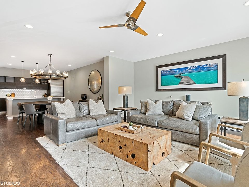 High end furnished rental in Bucktown! Owner looking for 6 to 7 month lease ONLY. 3 level townhome with 2 car garage with electric carport and THREE great outdoor spaces. All 3 bedrooms have en suite baths, and there's a powder room on the second level with kitchen/living/dining spaces. HUGE open floor plan on main level with designer (mostly RH) furniture and lighting. Floor to ceiling windows with electric window shades. Beautiful hardwood floors. High end stainless steel appliances. Big rooftop with seating, natural gas grill, lights, and water. Steps from the 606, a short walk to the El, and conveniently located at the border of Bucktown and Wicker Park. **Main living spaces and primary bedroom furnished. PLEASE do not ask if can be unfurnished. It can't. This is owner's preference.**