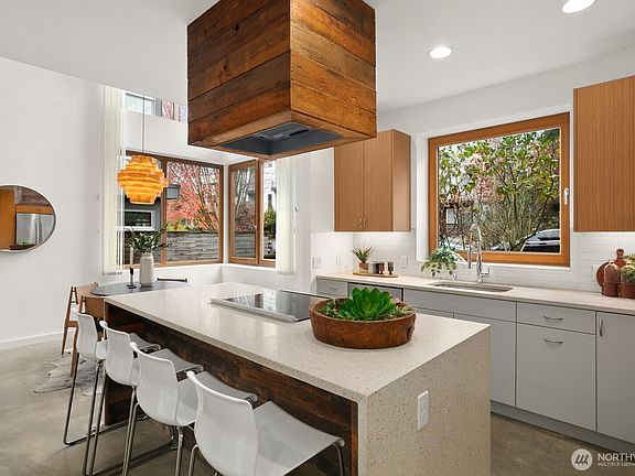 Award winning and exceptional Dwell Development build. Striking architectural design and high-performance construction with solar panels for sustainable living. This stand-alone home was the first to receive the "Built Green 5-Star Emerald certification" in Seattle. Where comfort meeting consciousness - showcasing reclaimed barn wood and aged metal siding, polished concrete floors, and vaulted ceilings with triple-pane windows. Recent updates include a new boiler system, custom kitchen cabinets, and new interior paint. Thoughtfully designed with 3 beds, 2.5 baths, a loft space and fully gated yard. Includes EV parking and a central Ballard location close to dining, shops, and parks. A rare fusion of innovation, design, and eco-luxury.