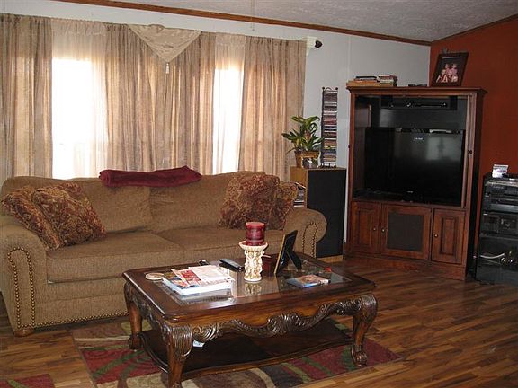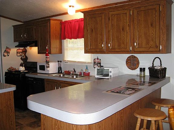 Great home with beautiful views from front yard. 2 ponds, rock, formations, and trails on back of property. Close to town but just far enough away to enjoy the quiet and serene area. New heating system, also propane wall heater and wood burning stove. Permanent foundation w/engineering documents, new fencing, screened back porch, new paint w/ mildew resistant. This home has been well cared for and is ready for new owners. Come enjoy the beautiful views and all the flowers and beautiful trees.
