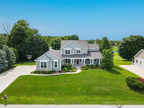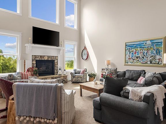 This stunning home overlooks Elmbrook Golf Course. Nestled within a well established neighborhood, this 5 bedroom custom built home welcomes guests with a large foyer & open floor plan. Living area features a stone fireplace surrounded by over sized windows, large island w/ seating & dining area with sliding door to deck. Private primary suite on main level w/ office enclave. Upper level boasts 3 more bedrooms, including a private en suite, guest bath w/ 2nd laundry & loft space. Lower level family room w/ fireplace, bedroom & full bath. Attached 3 car garage enters to large mudroom & laundry area. This home has it all and is just minutes to the heart of Traverse City. Welcome home!
