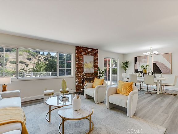the backyard. The expansive living room is anchored by bright and sunny windows with hillside view and