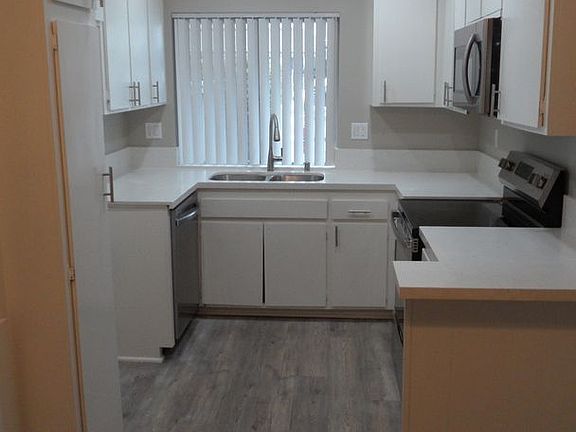 Single story; ground level; no one above you; 2BR; 2BA condo located in the Park Tustin Community includes 1 car attached garage with remote and direct access into condo and 1 assigned parking space outside your front door. Interior of condo has smooth ceilings; A/C; vinyl floors; and new carpet in bedrooms. Living room with decorative fireplace and sliding door opens to interior courtyard with lots of natural light. Kitchen with new quartz countertops, canned lighting, stainless steel appliances, built-in microwave oven; new dishwasher and range; and eating area with ceiling fan and lots of built-in cabinets and shelves. Master bedroom with double door entry, ceiling fan, walk-in closet and attached bathroom with sink vanity, new quartz countertop, and separate toilet room with shower stall. Sliding door off master opens to private patio. Secondary bedroom with walk-in closet, ceiling fan, and sliding door opens to courtyard. Hall bathroom with sink vanity, new quartz countertop, and shower/ tub combo. Washer and dryer hook-ups in garage. Association pool, spa, and clubhouse. Great Tustin Unified School District; close to the 55 and 5 FRWY, Enderle Center, 17th Street with endless shopping/restaurant options, and Old Towne Tustin. Tenant pays all utilities.
