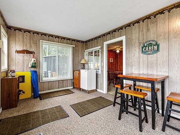 The living room invites you into a warm and cozy atmosphere, perfect for winding down with your favorite television shows or enjoying spirited movie nights. The cabin features two generously sized bedrooms, a charming dining room that’s perfect for family meals, and a fully equipped kitchen that promises culinary delights.