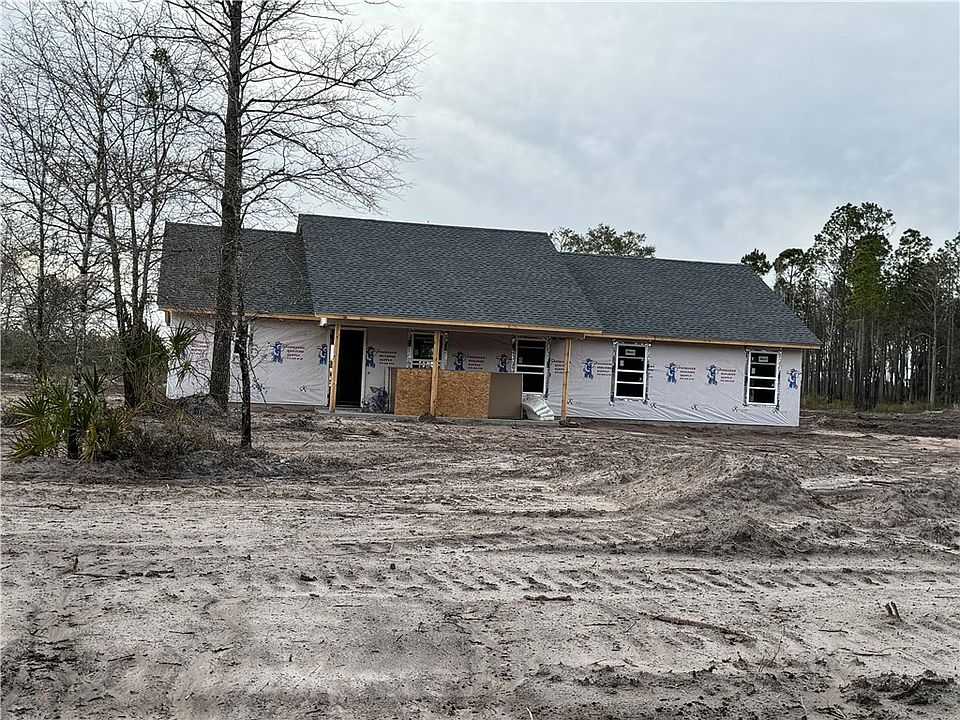 Under Construction, Approximate completion date, mid April, split and Open floor plan, 3+ Acres of land, . Front porch and back patio. County maintained dirt road. This really is a good site for county living, and not too far from Brunswick, located in Brantley County on the Glynn County line. Zoned Agricultural.
