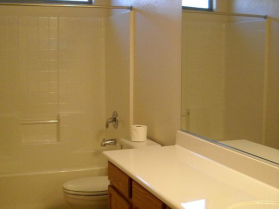 This is a very nice 4 bedroom 2.5 bath home all ready for the new tenant. Downstairs there is a formal living room, family room, kitchen with corian counters and half bath. Upstairs find the master bedroom, master bath with double sinks, laundry room and 3 other bedrooms. One bedroom is set up to be an office with built in cabinets. This home was just painted and all new flooring installed. Back yard has grass and covered patio. This is a great place to call home. Washer, Dryer and Refrigerator are available but not warranted by owner or property management company.