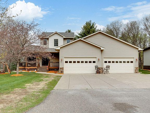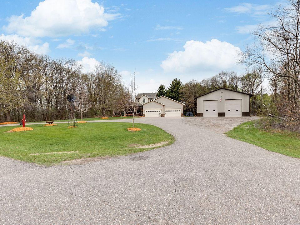 Beautiful Modified two story on 8.5 acres! Only 3 homes nestled on this quiet and private road. 5 bedrooms and 4 baths with a main floor Master bedroom suite. 4 car attached garage and a 40x60 awesome pole shed. Main level walks out to a large cedar deck. Lower level fully finished and a walkout. 2 fireplaces. All located on a private and secluded road. This one truly has it all !