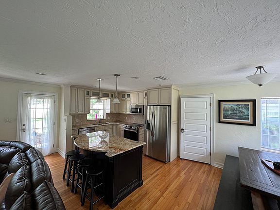The main level is 1000 square feet of beautiful hardwood floors in this 3 full size bedroom home. There is ample storage with 2 closets in the largest BR, 1 closet 2nd BR and a full size closet in the downstairs BR. There is 1 full bathroom an open concept family room, dining room, kitchen and a wood burning fireplace.