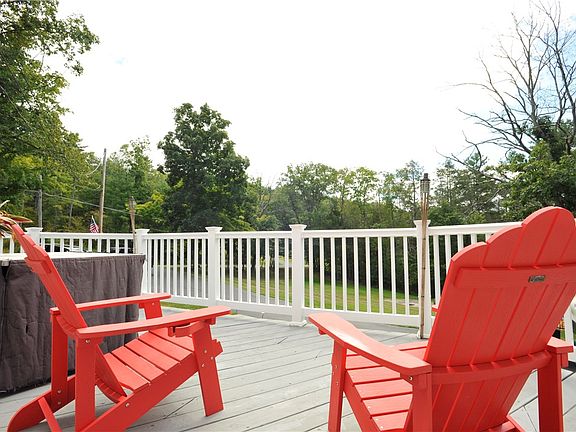 The walk-out lower level is perfect for entertaining. It's been completely renovated with a bar, hardwood pellet furnace, half bath, and laundry area. Step outside from the kitchen onto a spacious wraparound deck that overlooks the yard, creating the ideal setting for outdoor gatherings. Enjoy summer days by the new above-ground pool and deck or relax around the built-in fire pit on the concrete patio.