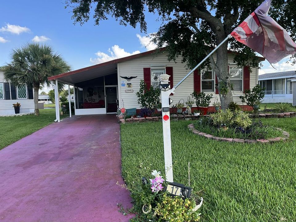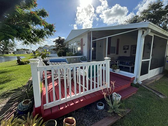 Welcome to Heron Cay, a 55+ age-qualified active and vibrant community, where you can find yourself in your dream home. We have a stunning two-bedroom, two-bathroom home for sale featuring 1152 plus an additional 250 sq ft of beautifully designed living space with a huge gorgeous bonus four seasons Florida Room that spans the entire width of the home with windows that overlook a panoramic view of the best view of the lake at Heron Cay. Facing the lake is a large screened in porch with luxury terra cotta floors which leads to a stunning wooden sun deck for entertaining al fresco and enjoying the gorgeous view. Gleaming luxury plank flooring runs throughout the home. A spacious living room with alcove dining room and a bright, white updated kitchen with updated appliances including dishwasher and chic artistic lighting are great for relaxing and entertaining, alike. There is a dedicated laundry area laundry room inside complete with washer and dryer. Your new home features high ceilings with detailed crown moulding and a soothing neutral color palette for a warm and inviting vibe. Along with large guest room and guest bathroom, you will luxuriate in an enormous premier bedroom en-suite with updated bathroom and a walk-in closet. Modern ceiling fans run throughout the home. The extra-large carport accommodates 2 cars and a Golf Cart and also hosts a screened in the seating area and large shed with extra shelving. There are fitted and numbered easy- to-apply plexiglass storm windows for additional security, and peace of mind. With updated roof, HVAC This home will not last long! You must see it to experience the charm. Located in desirable Heron Cay, residents enjoy access to a range of premium niceties, including a resort-style pool, fitness center, clubhouse, tennis, library, billiards, cards, putting green, shuffleboard, bocce and more. Conveniently situated near shopping, dining, major highways, public transportation, etc., you'll have everything you need just minutes away. Whether you're looking for relaxation or recreation, this gorgeous Florida oasis and this vibrant community has it all. Priced to sell and won't last long. Call today for an appointment to see this home in person!
