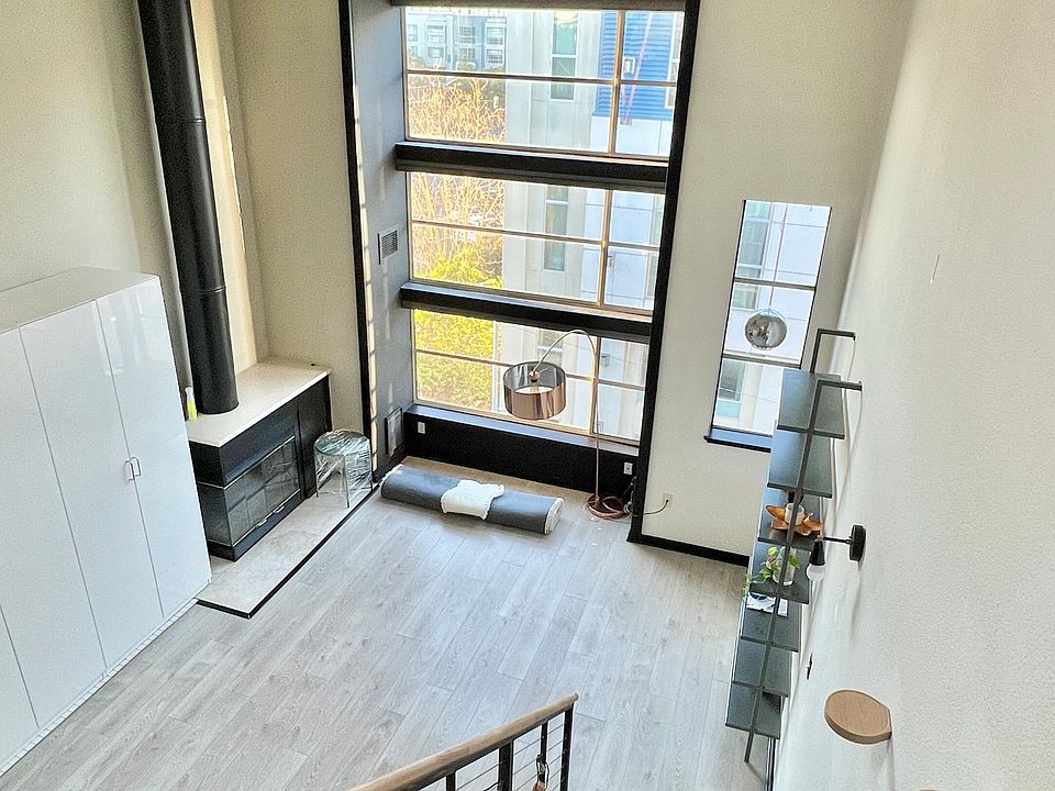 This beautiful 2 bedroom 2 bathroom live/work loft has a grand two-story living room with a wall of windows and an open kitchen perfect for entertaining. Completely renovated in 2018 with new bathrooms (new Whirlpool washer and dryer) and kitchen (new Bosch dishwasher).