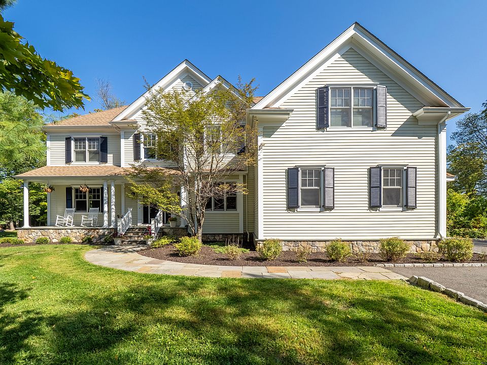 Exceptional custom home in the premier Ridgefield commuting location! This 4BR/3 Full Bath/2 Half Bath home blends warmth and understated elegance with top-notch details and finishes throughout. A welcoming two-story foyer opens to the light-filled main level featuring a living room with gas fireplace that flows seamlessly into the spacious dining room. At the heart of the home is the chef's kitchen with high-end appliances and a large center island, opening to the show-stopping, two-story family room with walls of windows and gleaming hardwood floors. A private office and powder room complete this level. Upstairs, the serene primary suite offers a luxurious spa bath, while an en-suite guest room and two additional bedrooms with a shared bath provide comfort and space for everyone. The finished walk-up attic is perfect for a playroom or second office, while the lower level, already framed and ready to finish, offers future expansion potential. Enjoy morning coffee on the charming front porch or host summer BBQs on the deck overlooking the private, level backyard framed by classic New England stone walls. Three-car garage with wifi remote access. Located within 2-minute drive from shuttle service to Katonah Metro-North station, and less than two miles to Branchville Metro North Station with direct service to Grand Central. Ideally close to top-ranked schools, Ridgefield's vibrant Main Street, the popular Rail Trail, this is the perfect place to call home! The house sits between Woodlawn and Lincoln Lane. Driveway sits on Lincoln Lane.