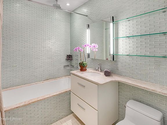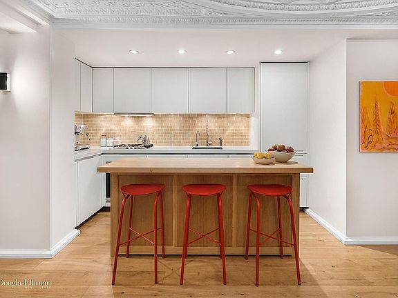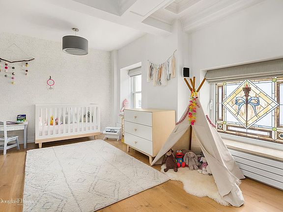 Prewar doorman loft condominium in The Forward Building located in the Lower East Side. Unique two bedroom/2bath unit with original decorative plaster ceiling dome with sunburst centerpiece in the living room. All rooms face onto Seward Park providing a view of trees, gardens, sitting and play areas. The open kitchen has top of the line appliances, Subzero refrigerator and Miele oven, gas cooktop, dishwasher and W/D. All wide hardwood floors, 9' ceiling, central air conditioning, and custom built-ins. The master bedroom has en suite luxurious bathroom with large dressing area and open closet space and the second bedroom comes equipped with spacious built-in closet. Both bedrooms have an original stained glass window in each room. Unit comes with storage cage in the basement as well as a storage room (#C3) accessible across the hallway with cedar lining and custom built closets. Apartment is accessible directly from elevator. Building amenities include doorman, bicycle storage, refrigerator storage for food deliveries, rooftop terrace and wheelchair accessible. The F subway line is on the corner with lots of restaurants, food stores and services nearby.