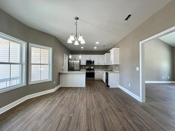 Come discover this newly constructed home nestled in Burnside Estate with 1,650 square feet of living space with 3 bedrooms and 2 full baths. The living space is beautifully accented with vaulted ceilings with custom beams .Luxury vinyl plank flooring runs throughout the home. The kitchen is outfitted with stainless steel appliances and charming bay window that allows natural light to warm the dining area. The primary bedroom is a true retreat, boasting another vaulted ceiling and his and her closets for ample storage. Two additional bedrooms provide comfortable rooms for family or guest to retreat too. Step outside to the deck, an ideal spot for morning coffee or sunset views overlooking the shared pond. The property also features a two-car garage for storage and convenience. This home is a must see call today for a showing.