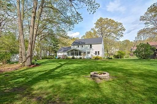 One of Holliston's most desired neighborhoods. Nature at its finest is the backyard of this impeccable 4 BR Colonial. Enjoy the 3 season porch w/vaulted ceilings which provides views of a beautiful level yard and conservation land beyond. A traditional floor plan includes hardwood flooring in the LR, DR, and gas fireside FR. Updated eat-in kitchen with brilliant white cabinets and custom built pantry. Half bath and separate laundry will complete the 1st floor. Hardwoods extend through the upstairs to the Master BR w/walk-in closet and 3 other nice size bedrooms. All three baths have been updated. The basement is finished offering a rec-room and bonus room for ideal office space. Great storage in attic, garage and shed, plus wired for generator! Updates are pleasingly extensive: New Roof including shed, Microwave & DW 2020, Viessmann burner, Hot water tank & Gas FP 2019, Vinyl siding 2015, brand new washer too! Holliston offers Rail Trail, quaint downtown and award winning schools!