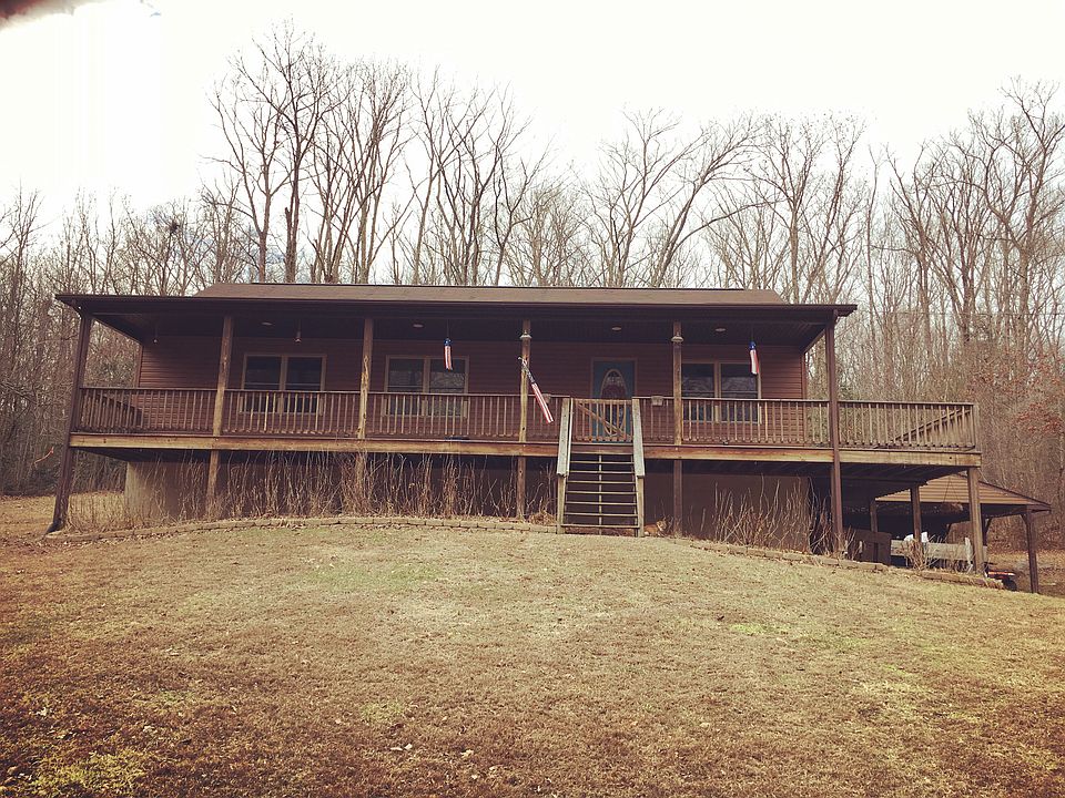 Quiet and Private Country Home Country living at its best on this 5.96 acre parcel with a 3BR, 3BA, residence boasting a large covered front porty with wrap around decks. Low maintenance hardwood hickory flooring through most of the home. The spacious kitchen has an island/breakfast bar and lots of cabinet and counter space with new tile floors and updated appliances. New lightning and paint throughout the home. The full walkout basement has a flue for wood stove. There is a full bathroom and laundry area in the basement as well. The detached 2 car carport has an attached workshop. There is a newly erected shop with concrete floors perfect for storing or working on vehicles. Enjoy the views of the pond by the firepit while catching or feeding a variety of fish.