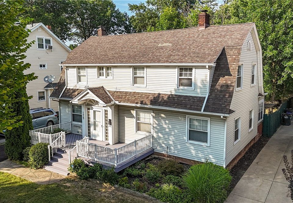 Very cute vinyl sided front porch Dutch Colonial with 4 bedrooms up stairs, 2 of them has enclosed porches off them, 2.5 baths, living room with fireplace, dining room with beautiful natural wood built-ins with leaded glass, kitchen with granite counter top, newer flooring in the 3 season room off the dining room, partially finished basement, with full bath and exit door. Newer electrical panel, Large back yard great for entraining, a gazebo. there some newer windows and the roof is newer. A MUST see great family home. Seller is a licensed Real Estate agent in Ohio