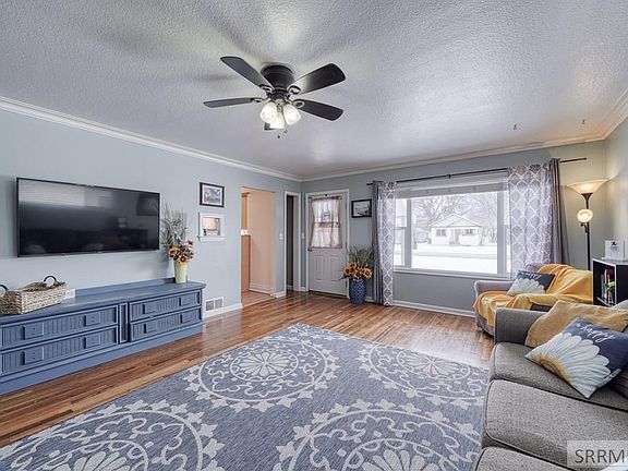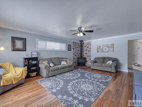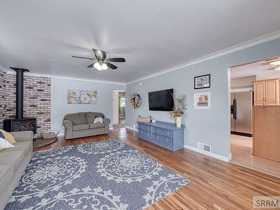 Gorgeous new listing in Rigby! Entering from the covered porch you are greeted with a spacious living room featuring beautiful hardwood flooring, free standing gas stove with brick surround, and tasteful two-tone paint with coved ceiling. Your kitchen features laminate flooring as well as updated cabinetry and countertops, with a large window overlooking the front yard. The nice size kitchen/dining area provide you with plenty of space for preparing meals and spending time with the family, with the benefit of being right off the living room but not visible from the entry. Off the dining room you will step down to the family room featuring newer carpet/paint as well as a fun play area for the kids offering a playhouse with slide! The laundry is conveniently located off the family room, meaning no lugging laundry to the basement. On the main level you will also find 2 nice size bedrooms with the beautiful original hardwood flooring, and newer two tone paint. The bathroom features tile flooring, large vanity, built in linen storage, and tub/shower combo. The basement offers a third bedroom, and storage. You will love the spacious backyard, as well as the private deck and enclosed patio. The 2 car shop/garage offers plenty of storage. Also pre inspected for your peace of mind!
