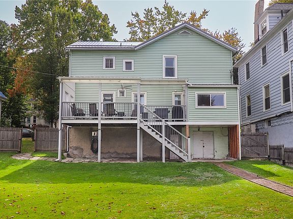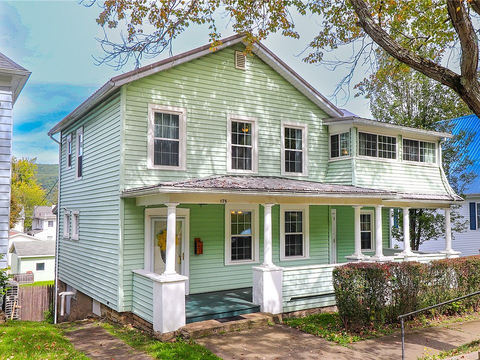 Welcome to Southside Hill living! This inviting two-story home blends comfort, flexibility, and thoughtful updates in a setting designed to fit your lifestyle. From the moment you step inside you'll feel right at home with a beautiful hardwood floors in the dining room and a light-filled interior with replacement windows throughout. The heart of the home is the bright eat-in kitchen, perfect for casual meals and gatherings. The main floor offers a full bath and a spacious bedroom that has been converted into a large laundry room. If you prefer, the laundry can easily be relocated to the walkout basement, restoring the room to a traditional bedroom. Upstairs, you’ll find three additional bedrooms plus a flexible common space, currently used as a bedroom but easily converted to a bonus den or office, along with an enclosed, heated porch that extends the living area year-round. Hardwood floors lie under the living room carpet, waiting to be revealed, and a new hot water heater (2025) and metal roof (2020) provide peace of mind. Outdoor living is just as appealing, with a covered deck overlooking the fenced, flat backyard—a perfect spot to relax or entertain. Car enthusiasts, hobbyists, or anyone needing extra space will love the detached four-car garage with its own 200-amp service. And even more off street parking is available beside the garage. The full, walkout basement is dry and versatile, offering room for a workshop, workout area, storage, or all three. And the location couldn’t be better: you’re just a short walk to three city parks, Historic Market Street, and all that Corning has to offer—restaurants, shops, and vibrant community life.