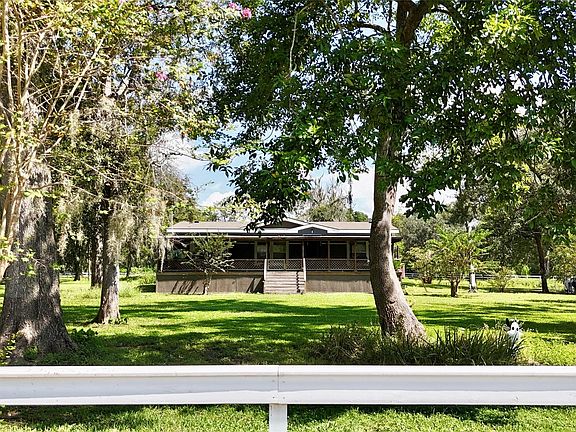 5 monster oak studded acres! NO RESTRICTIONS!! Palm Harbor, like new, (2023) 3/2/1,440 farm-style with open floor plan. Quiet country retreat with beautiful improvements. Wood post and rail fence (painted white), 60 x 20 barn, carport, and storage shed. Nice and shady with parking aplenty. Wildlife haven! Private pond teeming with fish, paper-shell pecans, deer every night. A true gem in the serene wildlife scenic neighborhood of Brazos Bend. Only mins to med center or beach. Appliances will stay. (Electric oven, fridge, dishwasher) Give us a call today!