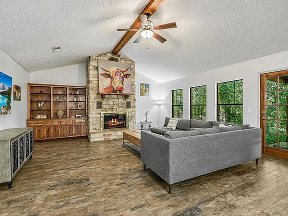 Welcome to 175 Fischer Trail, a rare 10.19-acre fully fenced property in the heart of the Texas Hill Country offering the perfect blend of privacy, usable land, and multi-functional space. The 2,711 sq ft main home offers 4 bedrooms and 3 full bathrooms, including two primary suites - each with its own private door to the exterior - perfect for multigenerational living or guest privacy. The home features an open, comfortable layout with peaceful views overlooking the back pasture. A 708 sq ft workshop provides excellent flex space and could be converted into guest quarters, a studio, or a home office. Outdoor features include a back pasture, tack room, and pen suitable for horses, as well as established trails, a chicken coop, gardens, multiple storage sheds, a wet-weather pond, and even a batting cage. The property also offers a carport and a large RV barn for additional storage. This style setup is ideal for buyers seeking acreage, space for animals, or room for future improvements. Enjoy privacy, usable land, and a true Hill Country lifestyle.