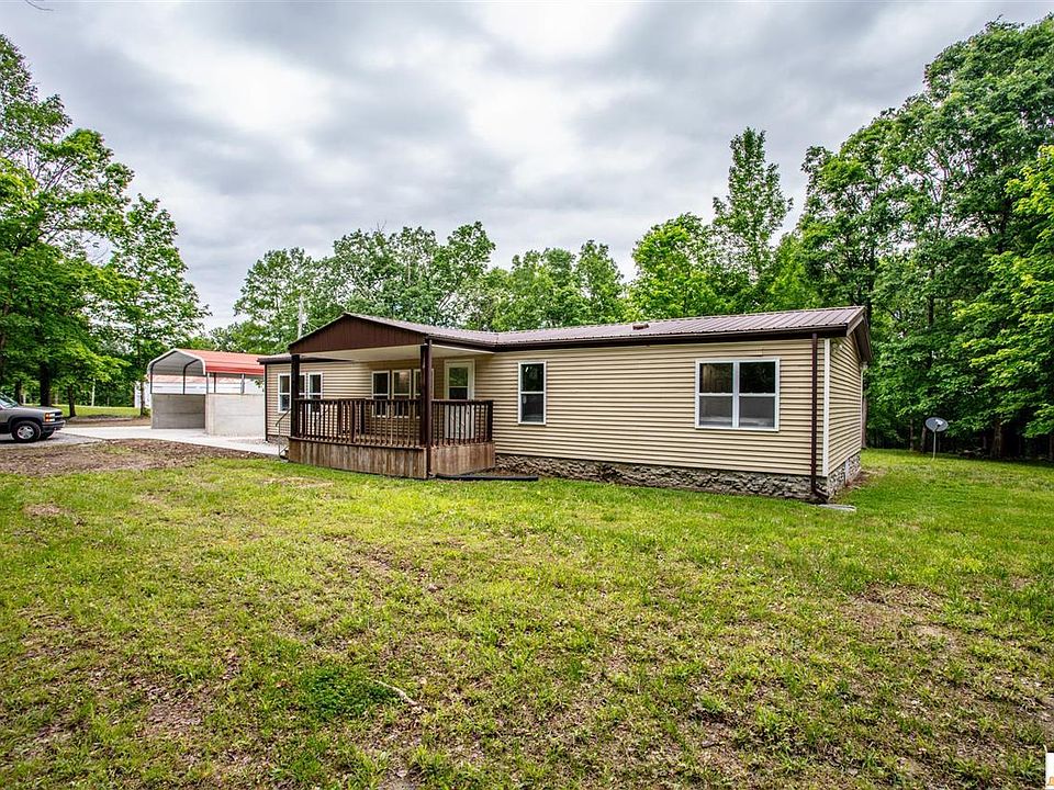 Not your average double wide! Here is the chance to own your own slice of paradise! This home has been completely remodeled and has a list of high class upgrades. Granite counter tops, tray ceilings, spray foam insulation throughout the entire home, tile bathrooms, new windows, drywall, new flooring, soft close cabinets, new washer/dryer, and more! Property comes with 2.5 +/- acres by new survey, a spacious carport, and an outbuilding. The home has four bedrooms, two bathrooms, and there is new landscaping and concrete walkways that surround the home. Additionally, there is a front porch, back porch, and a concrete patio around the back of the home for entertaining. This place really has it all!