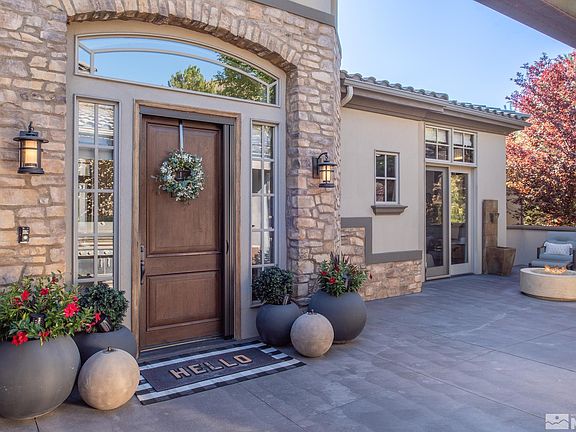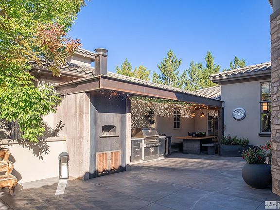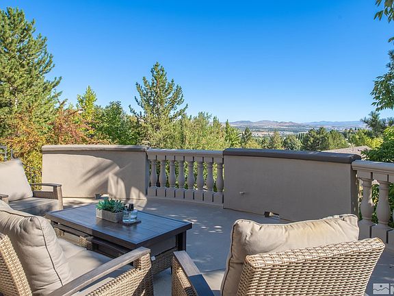 Beautifully renovated home on .92 acre in the exclusive gated community of Eagle’s Nest located in Caughlin Ranch. The home features a well-designed floor plan and beautiful outdoor spaces equipped with panoramic city and mountain views. The entrance to the home features a newly renovated paver driveway and cozy courtyard perfect for entertaining. The courtyard has a wood-fire pizza oven, Restoration Hardware firepit, high-end Kalamzoo appliances, and a built-in steel and concrete table, seating 6., New landscape lighting brings a peaceful glow. Inside, enjoy natural light from an array of oversized windows, each donning hand-crafted window treatments. The photos give light to the details of the renovation from newly painted interiors, modern light fixtures and tasteful decor. The extensively updated kitchen features high-end Viking appliances, two Subzero refrigerators, two Kitchen-aid dishwashers, a warming drawer, a Galley prep-sink with accessories, butler’s pantry, custom cabinetry, and two expansive islands, one with a custom walnut top and other fit for counter seating. The tastefully done master suite features a beautiful seating area and large windows. The master bathroom has also been remodeled to include a spacious steam shower, Sonos shower speakers, a large soaking tub, and a TV integrated into the master bath mirror. The master also includes 2 fireplaces, a remodeled custom closet with washer and dryer, and its own private patio with a new Hot Springs salt-system hot tub. The lower level is complete with a large living area including bar, three full bedrooms and 3.5 baths, bonus room currently used as a gym with mirrors and custom rubber flooring, an additional laundry room, and a must-see wine cellar w/custom wine racks and new appliances. Entertain, relax, or simply take in the fabulous views from the veranda. Throughout every inch of the 6864-sf home, you will find incredible craftsmanship and unique finishes such as custom crafted 2-inch solid core knotty alder doors at each room. Home security has been updated with a Lutron Homeworks smart home system, as well as integrated Sonos speakers throughout. Location is perfect! A gated community adjacent to the Toiyabe National Forest, close access to trails and bike paths, minutes to airport and downtown. This Tuscan inspired luxury home on nearly an acre in Eagles Nest is adjacent to a greenbelt south of the home which enhances the privacy. Outdoor entertaining is a pleasure with a fabulous waterfall feature, fire-pit and spacious paver patio. You will love this beautiful property! Most furnishings in the home are included in the sale, an inventory of those items will be provided. See private remarks!
