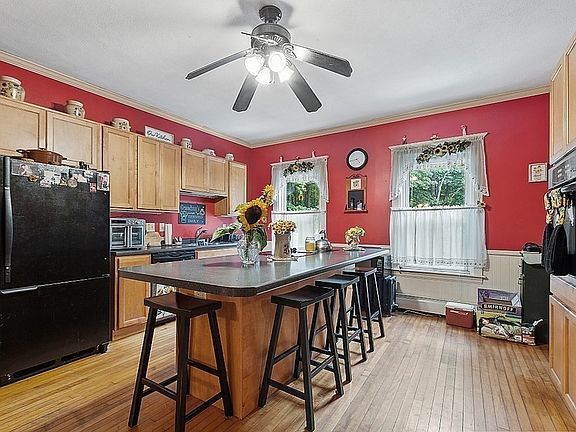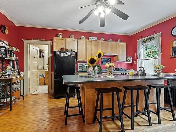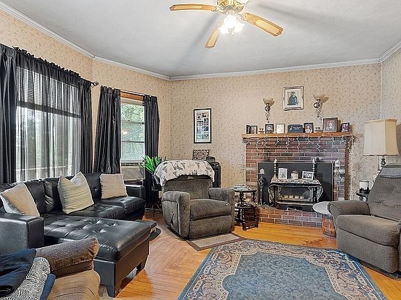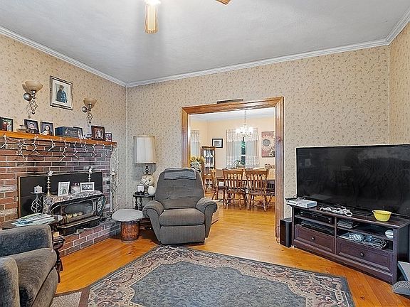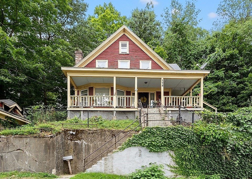 Raised above street level, this lovely Colonial home stands tall with an impressive view from its welcoming front porch. Featuring intricately laid hardwood flooring throughout, multiple built-in cabinets, a beautiful fireplace in the living room, and a handsome newel post leading up the hardwood staircase, this house offers historic details and charm. The first floor has large kitchen, dining, and living room areas as well as the full bathroom with laundry. The upstairs 3 bedrooms each have ample closet space. There is a 4 car garage on the street level with interior access into the full, unfinished basement. The level yard on both sides of the home provides opportunity for use as 2 separate spaces. Come see this hidden gem with great potential. First Showings at Open House on Sunday, 8/28.