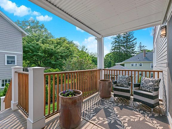 Not many rentals like this in town w easy and elegant living. Perched on a leafy, grand avenue, this stylish home boasts 2,700sf of fully renovated space on two floors. Lives like a single family home: distinct address, pkg deck, private front entry and french doors to deck & driveway. Recent gut renovation included hardwood floors, custom woodwork, handsome tile, Pottery Barn fixtures, built-ins and a gas fireplace. Central AC, high-e gas heat and on demand hot water system for year-round comfort. Outside enjoy a covered deck, and lovely fenced/landscaped yard. Three bedrooms, 3 baths w/master en suite, & WIC. First floor features spacious LR/DR & knock-your-socks-off kitchen. Stainless GE appliances include double wall oven, cooktop, microwave drawer, French door fridge, all set in white, custom, shaker cabinets with huge island. LL game room, laundry, guest bedroom/office & full bath w storage. This property will captivate the most discerning apartment hunter. Near town center and Fells. * Please note Google Street view may show the property before renovation. Owner provides lawn care. Rent includes occupancy and landscaping. Tenant pays for gas, electric, water, trash and snow removal. Occupancy date is flexible in late October or November. Strong credit score and references required.