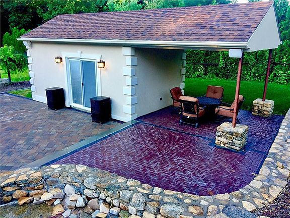 Contemporary Raised Ranch on 2.8 Acres in Scenic Scituate, RI. Discover your private oasis in the heart of Scituate! This mint-condition 3-bedroom, 2-bath contemporary raised ranch sits on 2.8 beautifully landscaped acres, set back from the road for ultimate privacy. Step inside to an open, sun-filled living space featuring a bright kitchen with granite countertops, skylights, newer appliances, and abundant windows. The living room boasts a cozy fireplace, perfect for relaxing evenings. Enjoy the view of the stone walls and waterfall looking out living room window and huge perennial garden. The lower level is fully finished, offering a spacious family room, laundry area, office, and utility room—ideal for work or play. Enjoy central air, gleaming hardwood floors, and peace of mind with a 2019 furnace and AC, plus recent exterior updates including siding and a roof just 5 years old. Outside, the property shines with stone walls, patios, a sprinkler system, lush landscaping and double waterfalls. Entertain or unwind by the saltwater inground pool with heated cabana with air conditioning, and wired for a tv to unwind by while watching the Sunday or Monday night Football games,wired for outside speakers and celing fan under patio —your own private retreat! Attached 2-car heated garage completes this perfect package. Move right in and start enjoying the lifestyle you deserve. Association fee is from Eagle Glen Homeowner's Association.