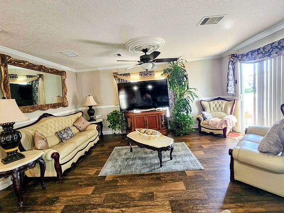 Beautiful like new 2 Bed 2 Bath Home. Wood like flooring throughout. Clean open kitchen with abundant cabinetry and Island, appliances included. Furnished dinning room. Spacious furnished living room. Spacious primary suite with walk in closet. En-suite bathroom with walk in shower bench seating, double vanity sink and linen storage. Laundry room, large shed attached to a long carport, cozy covered private porch, lush landscaping with mature avocado, mango and papaya trees. This home is located in the sought-after 55+ community of Sugar Mill, this residence offers a vibrant and inclusive environment for active adults. Enjoy the company of like-minded individuals in a community that fosters connection and camaraderie. Plus, with the community's unique policy allowing residents aged 40 or older to reside alongside a primary occupant who is 55+, you have the flexibility to accommodate various living arrangements. The amenities within the community are second to none, with a range of offerings to suit every interest and lifestyle. Take a refreshing dip in the sparkling pool or Jacuzzi, Enjoy a stroll with your dog in our Dog Walking Park, or host gatherings in the club house with a convenient serving kitchen. Movie nights are made memorable in the multi-media room, Pool table, Shuffle Board Courts, Horse Shoe area, while RV/boat storage ensures your adventurous spirit is always ready for the next excursion. Don't miss the opportunity to make this your forever home! With lot rent priced at $620.00, you'll enjoy the best of both worlds - an affordable lifestyle in a premium community setting. Experience the epitome of retirement living in this exceptional mobile home. Schedule your showing today and start envisioning your future in Sugar Mill!