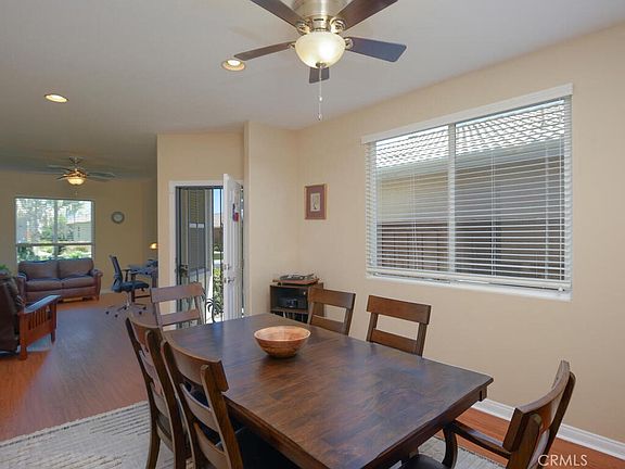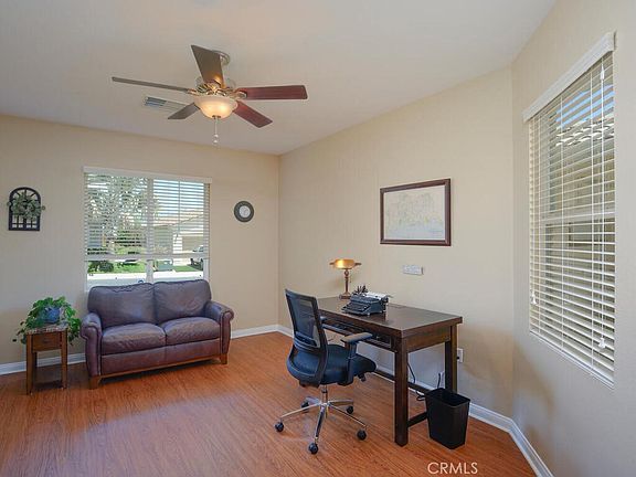 Pride of ownership shows in this super clean home and is upgraded in all the right places! Located in the prestigious FOUR SEASONS HEMET, Active Adult Community. This is a Masters Plan 3, with 3 bedrooms, 2 full baths, and on a quiet cul-de-sac road. Ask your agent for the list of all the upgrades made to the home, which includes recent painting with designer paint inside and out, Luxury Vinyl Plank flooring installed throughout the home except the tiled wet areas, new AC compressor (energy efficient), new water heater, Wi-Fi smart Heavy Duty garage door opener, and many more. Also, a Quiet Cool whole house fan was installed in 2023, which will assist in getting the early morning and evening fresh air circulated throughout the home. This REALLY saves on the cooling costs. The front and back yards have manicured lawns, landscaped with plants all around. The sprinkler watering system was recently upgraded with a new Rachio 3 Smart Sprinkler controller, with iPhone app. The perimeter fence was also recently stained with an HOA approved color. This home in MOVE IN READY! Be sure to tour The Lodge, and experience the amenities, which include The Bistro, onsite restaurant with sit down service, billiards, movie theater, library, craft room and game rooms. The huge ballroom is always busy getting ready for the next program being held there...Banquets, bingo, live productions, dancing and much more. Outside the Lodge, we find the open patio area, offering concerts and summer programs, the pool with exercise classes or lap swimming, the gym building with hair salon. Behind the gym building, you find the shuffleboard, bocce ball, tennis and pickleball. Also as an added benefit - FOUR SEASONS HEMET HAS THE LOWEST HOA FOR A COMMUNITY WITH ALL THESE AMENITIES IN THE VALLEY, AND THIS HOME HAS NO MELLO ROOS. Check it out!