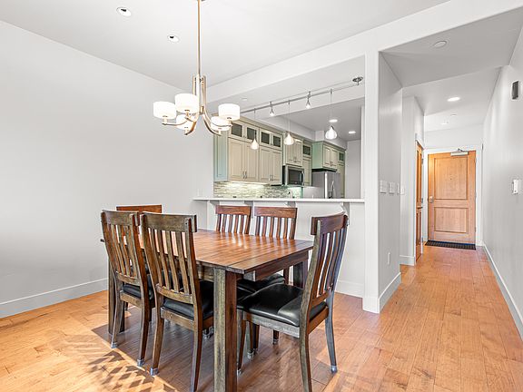 Stylish luxury condominium on the second level of Plaza West at First Place in the heart of downtown Ashland. Abundant natural light and airflow with operable wood-wrapped Pella casement windows, top-down bottom-up Hunter Douglas cellular shades, solid maple hardwood floors, gas fireplace with limestone surround, sliding glass door to private view balcony, kitchen with quartz dining bar and counters, glass tile backsplash, alder wood and glass-fronted cabinets with soft-close drawers and doors, stainless double sink and appliances including five-burner gas range with convection oven, four low-profile ductless mini-splits, two bedrooms with Berber wool carpeting, two full bathrooms with radiant-heated tile floors including ensuite with double vanity, jetted tub, and shower. Three gated entrances and elevator access from private underground garage with dedicated parking space and storage. Security system with video surveillance. Certified LEED Platinum. Seller financing available!