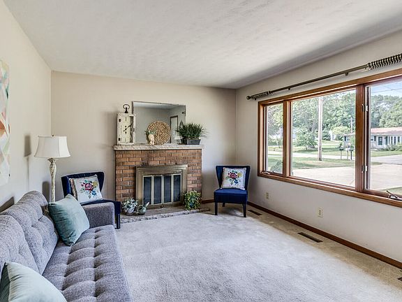 A classic mid-century brick ranch with attached two car garage and fenced in back yard. Newer roof! Fireplace! Three seasons room! Soaker tub/shower combo! Partially finished basement with wet-bar. It looks like hard wood floors hiding under the carpet!